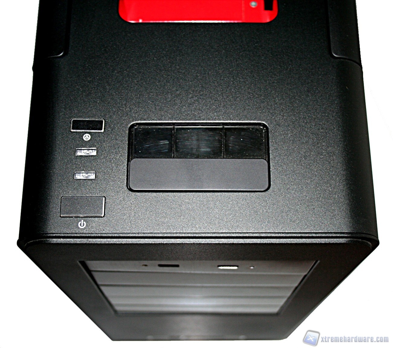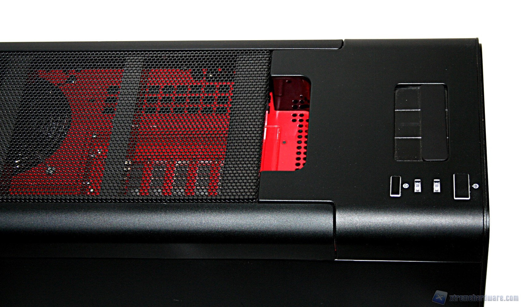 Il telaio è interamente in alluminio, dello spessore di 4.5 mm e presenta una colorazione nera e rossa; precisiamo che nella versione non “Limited Edition” la colorazione di base è nera. I frontalini hanno una classica finitura satinata di ottima qualità e sono anch’essi in alluminio. Sono presenti 4 slot da 5.25”, oltre al logo SilverStone in basso. I pulsanti di reset, accensione, l’indicatore di lettura degli hard disk ed i connettori ausiliari sono situati nella parte superiore. Anche in questo caso il posizionamento dei coprislot da 5.25” è davvero ottimo, il che permette di dar lustro all’intera struttura e di uniformare il design, leggermente retrò. Nella parte superiore, come è stato già menzionato, sono posizionati i due ingressi USB 2.0 ed i consueti ingressi per microfono e cuffie.