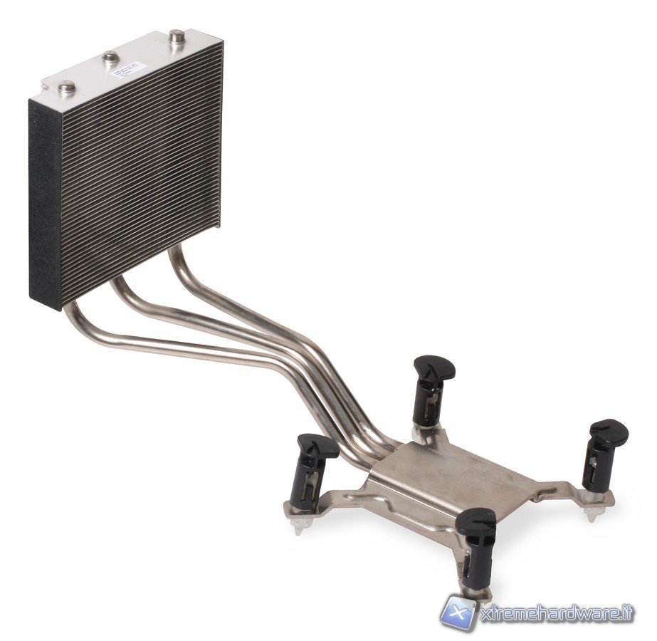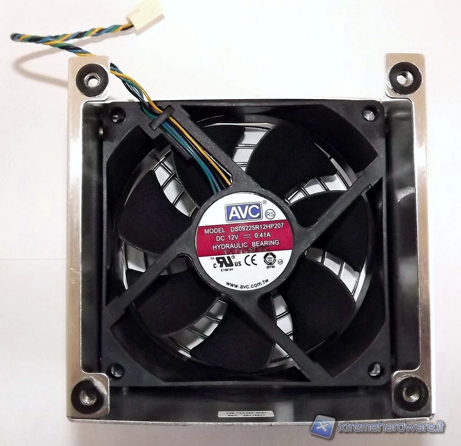 La ventola si trova protetta dentro un piccolo chassis dove è anche installata una griglia protettiva. La ventola ha serigrafata il marchio AVC, sempre prodotto a Taiwan ed è di tipo bearing idraulica con la sigla DS0922R12HP207 e connettore a 4pin, quindi in grado di essere termo regolata. Il dissipatore ICE di Shuttle è dodato di una base in rame, non lucidata a specchio; il corpo invece è in alluminio e da questa partono 3 heat-pipe che entrano nel corpo di fitte lamelle. Sia heat-pipe che pacco lamellare sono in alluminio. Nella base del dissipatore è presente un'etichetta che avverte che questo dissipatore va usato per CPU con un TDP massimo di 95W. Non è questo un problema in quanto le attuali CPU Intel di seconda generazione hanno un massimo di 95W per quanto riguarda il Thermal Design Power.